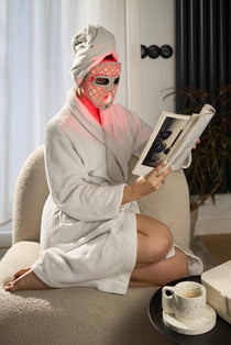 Die LED-Maske nutzt verschiedene Lichtwellenlängen, die in tiefere Hautschichten eindringen und natürliche Regenerationsprozesse stimulieren.
